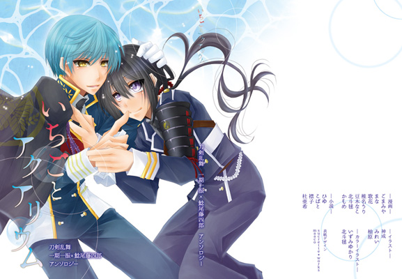 いちごとアクアリウム 一期一振×鯰尾藤四郎 カップリングアンソロジー - ABOUT 刀剣乱舞の一期一振×鯰尾藤四郎のカップリングオンリーアンソロジーです。 イラスト3枚(カラーイラスト2枚)、小説3編、漫画8編詰め合わせました。 途中「このカップリングのどこが好き・推し・注目して欲しいか」を執筆者さまが語るコーナーもあります。 最新情報は @itinama_anth でご案内しております。 - INFORMATION ![]() ■発売日:2015.08.30.閃華の刻 ■サイズ:A5 ■ページ数:124P/カラー口絵(両面) ■価格:1000円 ■レート:全年齢向け ■ノベルティ:ペーパーバッグ(歌花)/栞(かもめ)/眼鏡拭き(杜亜希) ■頒布イベント:10/11 閃華の刻2 ■10月以降に 書店委託/BOOTH通販 を予定しています - MENBER ※現在執筆者の公募は行っておりません ※お問い合わせは各作家さまではなく、主催の方にお願いいたします ※ヨネ子さま、きたのまちさまはご事情により辞退されました お二人の作品を楽しみにされていた方には申し訳ありません ※順不同/敬称略